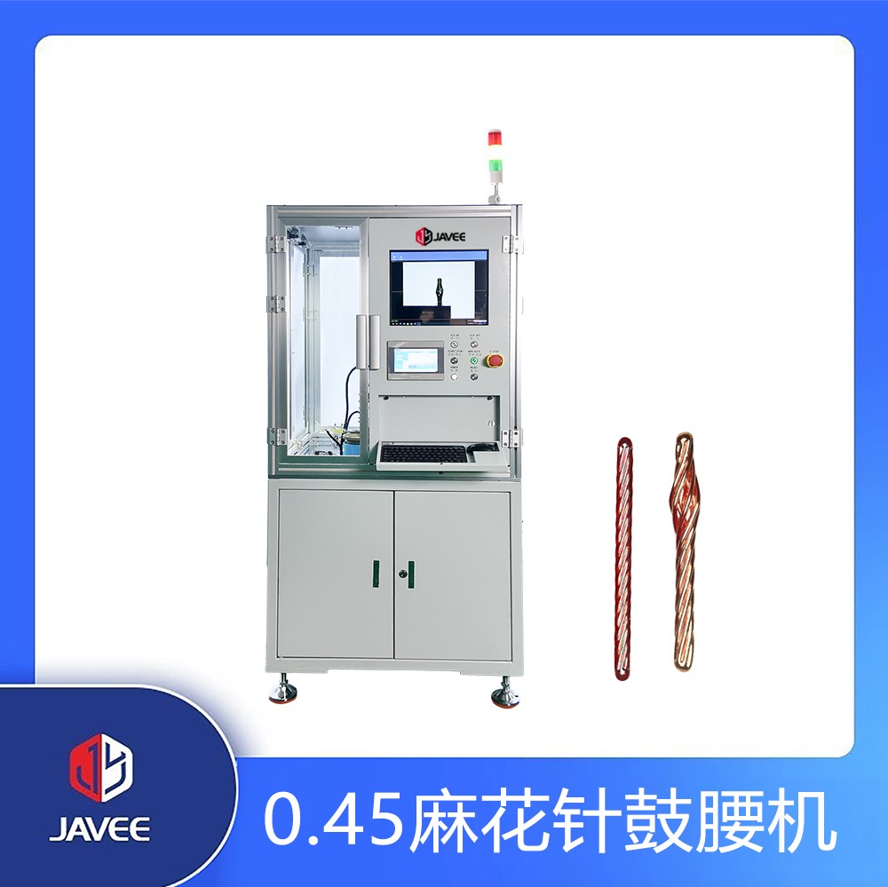 0.45麻花针自动鼓腰机主要用于麻花针鼓腰。麻花针振动盘上料,到料检测后将麻花针送入夹头,旋转鼓腰机构对夹头内产品鼓腰,视觉检测机构检测完后下料机构将成品按不同品质区分下料。旋转鼓腰机构由伺服电机驱动,可控制麻花针鼓腰尺寸大小;具备视觉检测机构,可检测鼓腰直径、长度,确保成品无歪头、伤丝、分丝、鼓型不均匀等不良状态,保证了设备的高稳定性和质量,提高了整机的生产效率。
